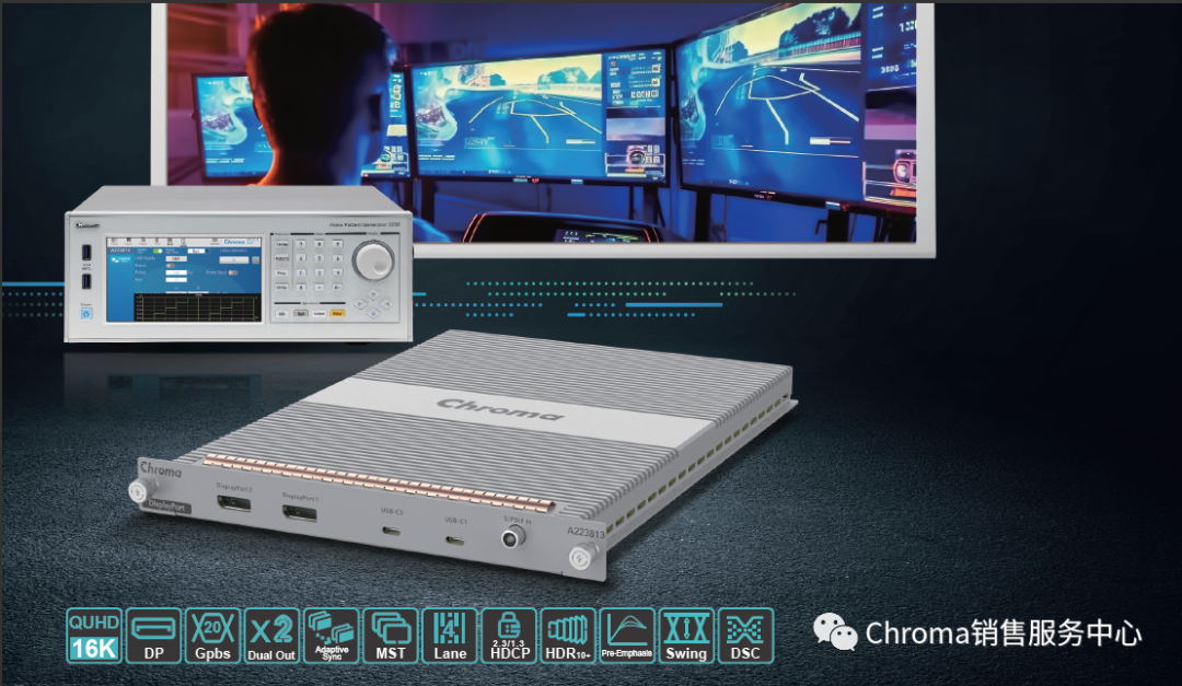 現代人玩手游、打電動不僅可以消磨時間,更帶動游戲產業發展,電競產業更是游戲產業里含金量高的一塊,各國培育專業的游戲玩家以及舉辦國際電競游戲賽事,隨之對于電競設備的規格要求也提高,高分辨率、高更新率、多個顯示器連接、大型圖像處理和專業的視訊工作等,DisplayPort為目前可達成高規格的接口,Chroma推出DisplayPort和USB-C雙輸出顯示器測試模塊A223813,分辨率輸出達16K,搭載DisplayPort 2.1版本支持單輸出端口總帶寬達80Gbps傳輸,包含Adaptive-Sync、MST、HBR3、UHBR20、Panel Replay、LTTPR等測試模式,內建HDR10+、HDR10、HLG等多種影像測試所需之測試圖形,提供多元、彈性化的完整視訊測試方案。